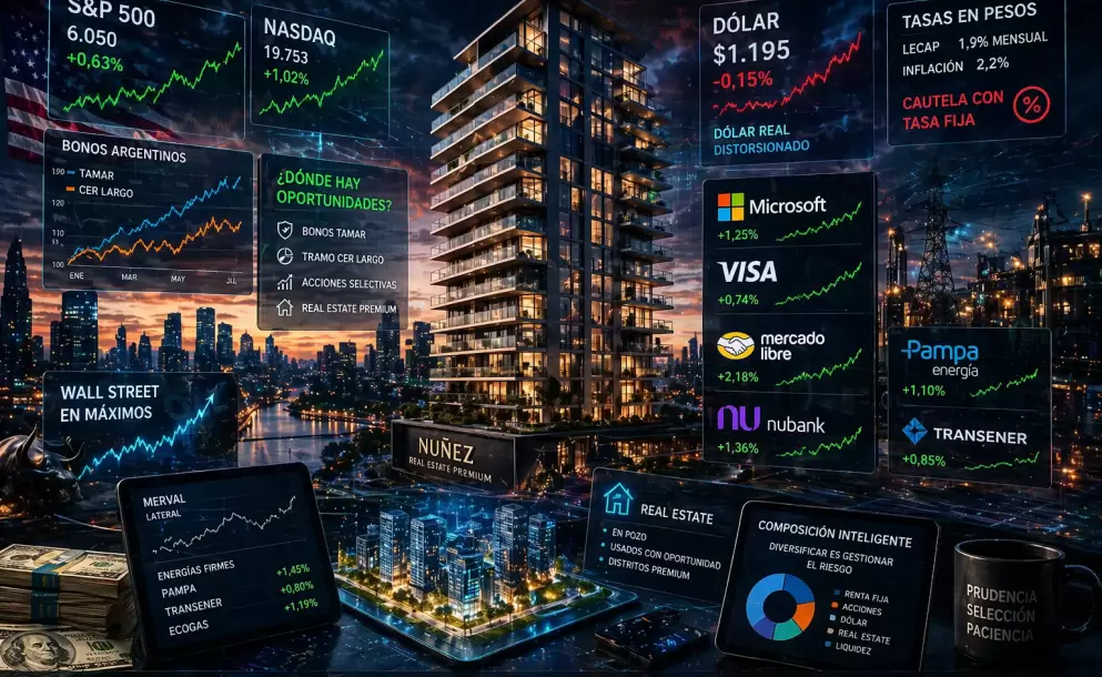 El mercado está en uno de esos momentos donde conviene bajar un cambio, mirar bien los números y no enamorarse de ningún relato. Hay cosas buenas, sí. También hay señales para tener cuidado. Y cuando se mezclan un Wall Street en máximos, un dólar local demasiado quieto, tasas en pesos que no terminan de cerrar y un mercado inmobiliario que intenta reaccionar en medio de una economía real todavía golpeada, la conclusión es bastante simple: hay oportunidades, pero no para invertir en automático.